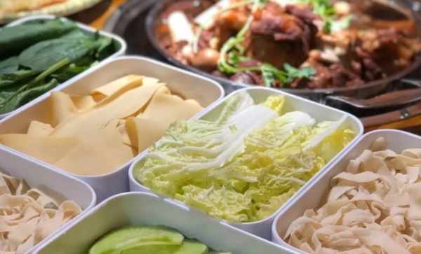 在這裡可以享受到大口吃肉的感覺,沒有油膩感,羊棒骨吃完之後,可以加入高湯涮各種菜,除了葷的羊肉卷牛肉卷以外,還有各種時令的蔬菜,他家的湯底是用羊肉的高湯打底,味道特別好,另外還有各種小凉菜,都是很好的解膩神器!