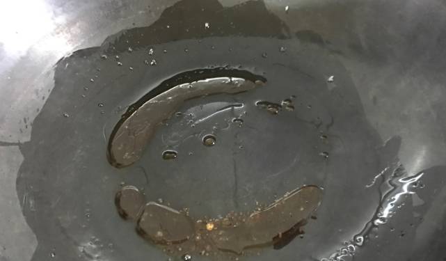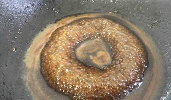 5、炒鍋裡面加入適量的食用油,把白糖下進去,炒出來糖色,微微的變紅就可以瞭。然後再把適量的清水也倒進鍋中。