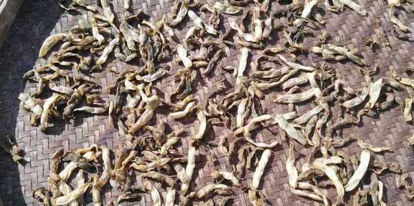 3.煮好的四季豆鋪在簸箕上晾曬三天