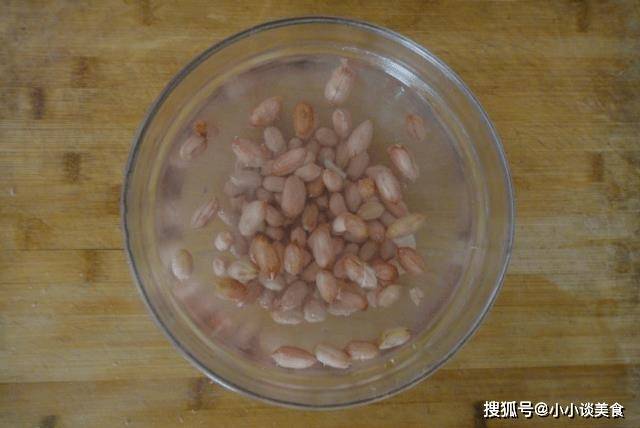 第一步:先準備新鮮的花生米,這樣吃起來更香。將準備好的花生去皮,花生去皮後放入碗中,倒入適量的水浸泡花生,然後浸泡約5分鐘。去吃。
