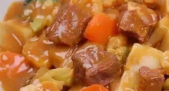 13、加入開水,沒過鍋內的材料,燉至土豆、胡蘿卜熟透