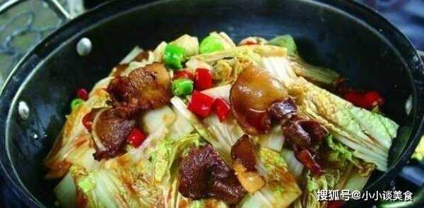 5.將五花肉炒至焦黃,然後加入切碎的大白菜炒,加少許鹽,加糖繼續炒。