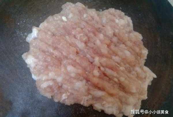 第三步:豬肉洗凈切肉末,鋪在豆腐上。攤開後,倒入少許植物油。所有的材料都經過處理後,蒸出來的菜會更香。