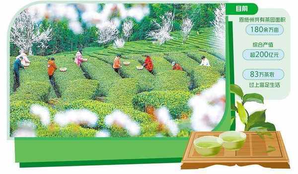 目前,恩施州共有茶園面積180餘萬畝,綜合產值超200億元,83萬茶農過上富足生活,成為建設“兩山”實踐創新示范區的樣本。