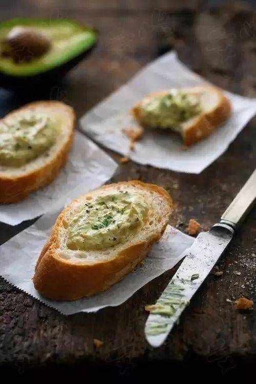 4)將打好的牛油果醬抹在烤好的法棍上,最後撒一點點黑胡椒碎即可。