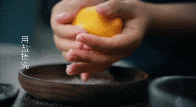 **檸檬用鹽搓一下表皮,這樣能夠更好地清潔檸檬表皮。