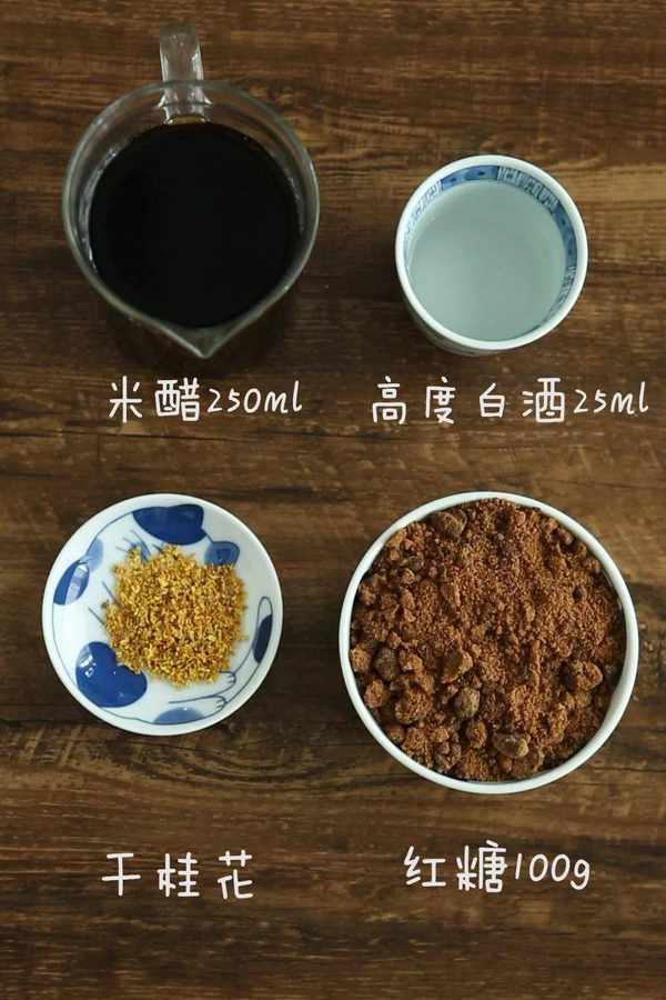 4)鍋中放入紅糖,米醋,清水和桂花,大火煮開,煮開後調小火煮2分鐘,關火放在室溫自然冷卻。