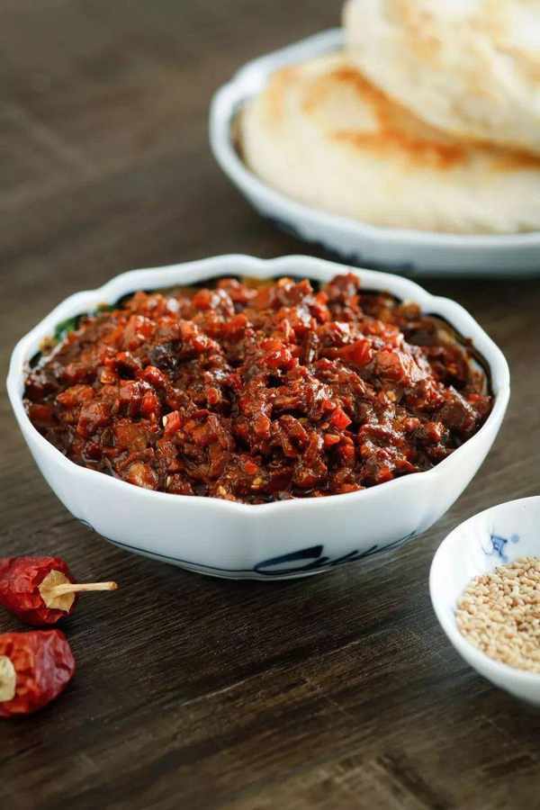 **這個醬辣子,夾白吉饃,抹饅頭都好吃得不行,就是太費主食瞭。你要是喜歡,放點兒肉末也行哈。