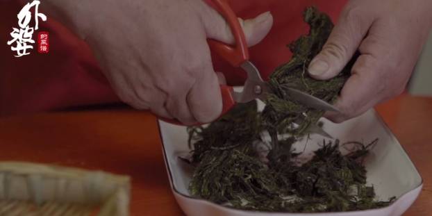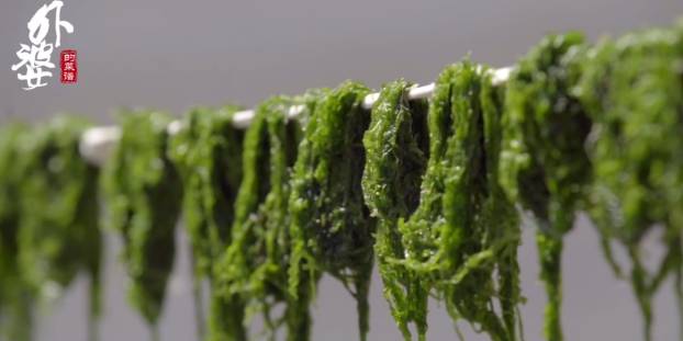 剛洗完苔菜,要在第一時間拿去曬,否則等苔菜發酵,味道便會揮發,顏色也會變差。其次,曬苔菜時最好刮西北風,這樣苔菜不僅幹得快,而且曬出的苔條幹且脆,是成就好品質的保證。