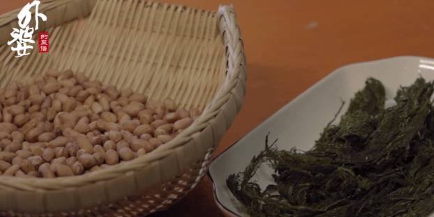 在海邊細心打撈起來的苔菜,借用海水洗凈泥沙雜質,烈日下曬上兩天,剪碎與花生米同炒,花生米咸香,苔菜酥脆,借用苔菜的香味,本來口感寡淡的花生米,點點翠綠沾染瞭一身,吃進嘴裡,越嚼越香。