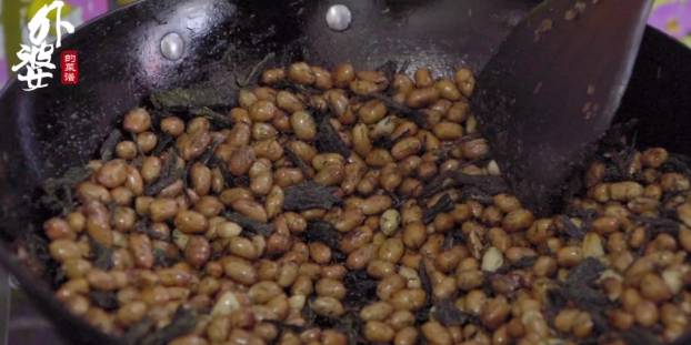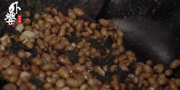 這是制作苔菜花生米最為關鍵的步驟,火候一定要小,哪怕是最小的火,也很容易炙焦瞭苔條。而苔條一旦炸過頭,容易瞬間焦枯,色澤泛黃,口感發苦不堪食。