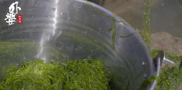 1、海邊拾取新鮮苔菜,用海水清洗幹凈泥沙和雜質,裝桶帶回傢備用。