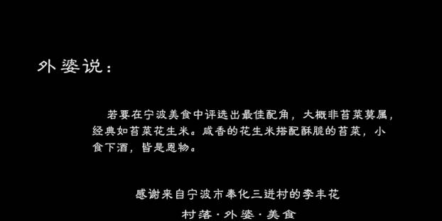 各地好酒老饕,豪飲之時,飯桌上定少不瞭一碟油炸花生米,咸香酥脆,越吃越起勁。但在寧波人眼裡,下酒菜花生米若缺瞭這苔菜的錦上添花,恐怕味道就會單薄瞭許多,飲酒的樂趣也將大打折扣。