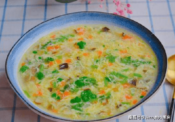 接著淋入蛋液,攪拌均勻,煮成蛋花。最後放些香菜碎,這道湯就做好瞭,簡單好喝。
