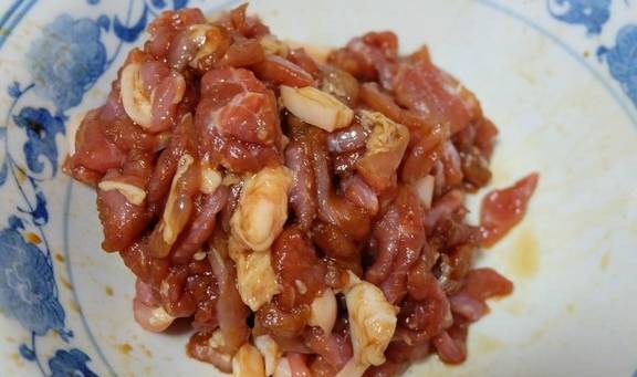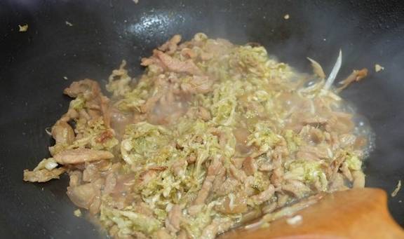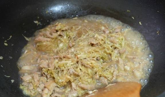原料:豬後腿肉、酸菜絲、粉絲、蔥、蒜、食用油、鹽、生抽醬油、雞粉;