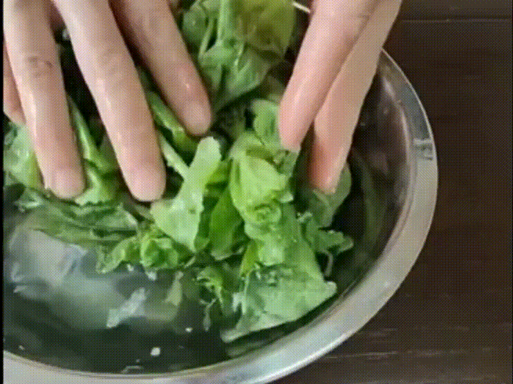 2.豌豆尖洗凈控水。