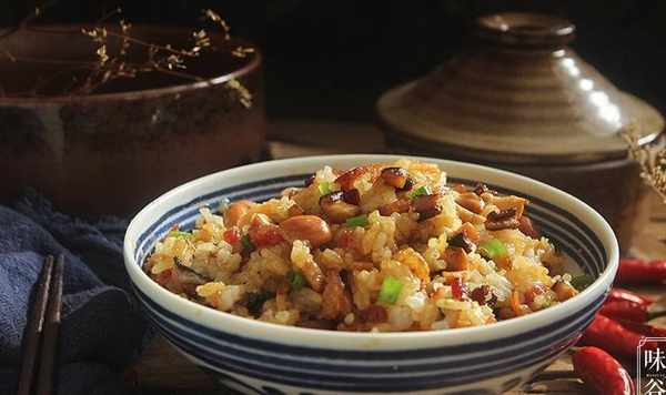 糯米是滋補品,補虛、補血、健脾暖胃,在冬天吃糯米飯最好,食用後全身感覺暖和,有助於散濕驅寒。糯米飯的靈魂是臘味,也就是臘肉、臘腸。再加上蝦米和香菇,撒上香脆的花生,油潤而不油膩。一碗簡單糯米飯,包含著滿滿的愛。