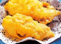 2、面粉、淀粉各半,拌均勻,鱈魚丁在裡面滾拌均勻。鍋燒熱,放入花生油燒至五成熟,投入鱈魚丁,炸至金黃色撈出瀝油。熱鍋放少許油,下蒜末煸香,倒入沙茶醬調和後盛於碗內。