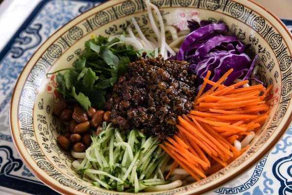 首先要說的就是我國首都的代表面食——北京炸醬面。炸醬面可算得上是北京的金字招牌美食之一瞭,不光是在中國,北京炸醬面在全世界都是鼎鼎有名的,看似簡單的做法呈現出來的味道可不一般。北京炸醬面在北京、河北和天津地帶最為廣泛流傳,作為一種傳統的中式風味小吃,獨傢秘制的炸醬是面條的靈魂,六必居幹黃醬和利民甜面醬經過炒制,再加上香香的肉末,碗裡再擺上豆芽、黃瓜、胡蘿卜等蔬菜,色香味俱全,一端上桌就令人食指大動。
