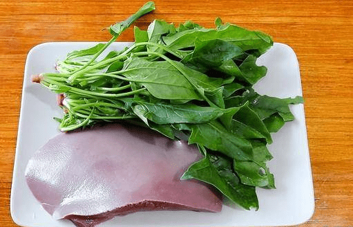 豬肝、菠菜、生薑、小蔥、枸杞、青蒜葉。