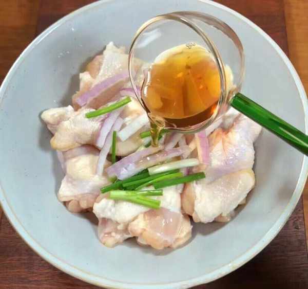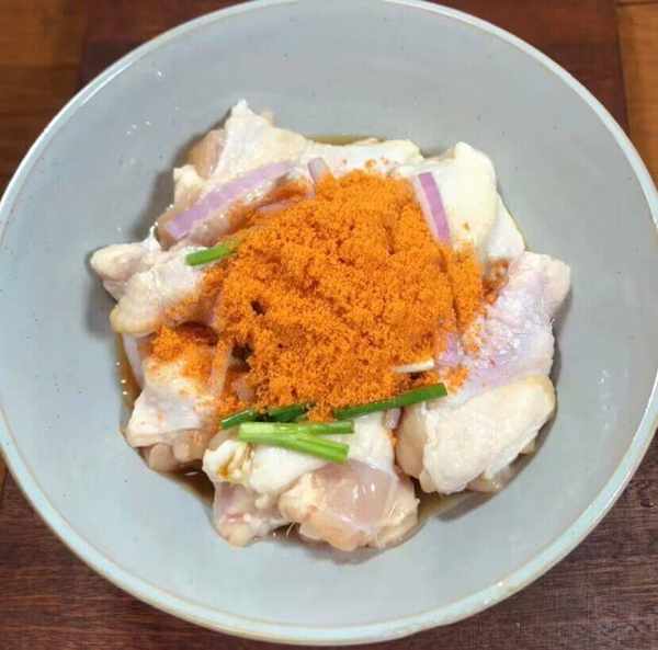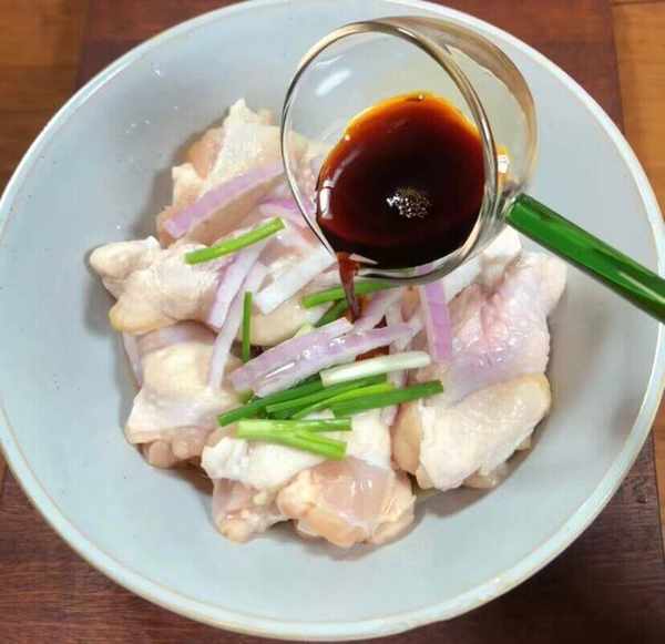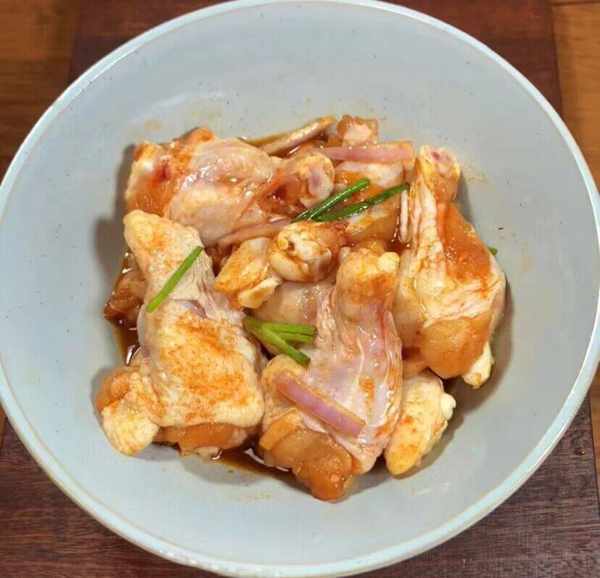 第二步:蔥薑料酒2勺生抽2大奧爾良醃料抓勻醃制30分鐘左右