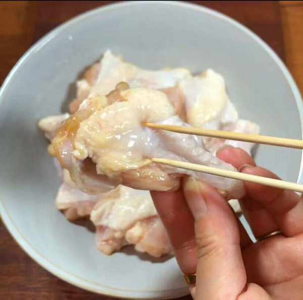 第一步:把小雞腿洗幹凈,然後牙簽戳戳幾下,這是便於入味