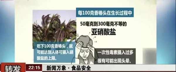 2017年4月,《祁河晨報》報道,鶴壁齊先生吃瞭香椿炒蛋兩個小時後,舌頭麻木,惡心嘔吐。