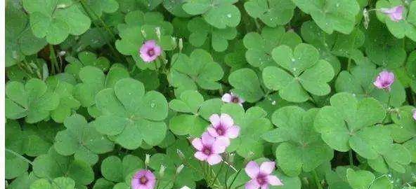 第三種,酢漿草。這種長得像四葉草的植物叫做酢漿草,在鄉下四處可見,它還會開出紫色小花。酢漿草的葉子吃起來有酸酸的味道,在古代有一種酸酸的飲料叫做酢漿,這種葉子漿汁帶有酸味的草也就被叫做酢漿草瞭。
