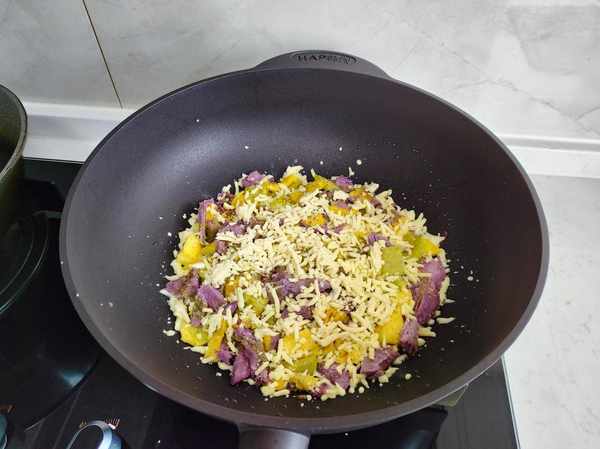 註意,這個一定要用不粘鍋哦,否則容易粘底,除非油多一些。