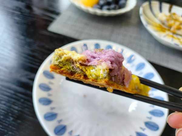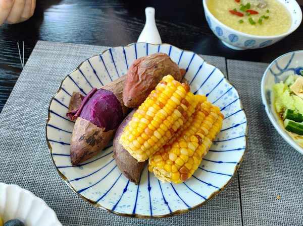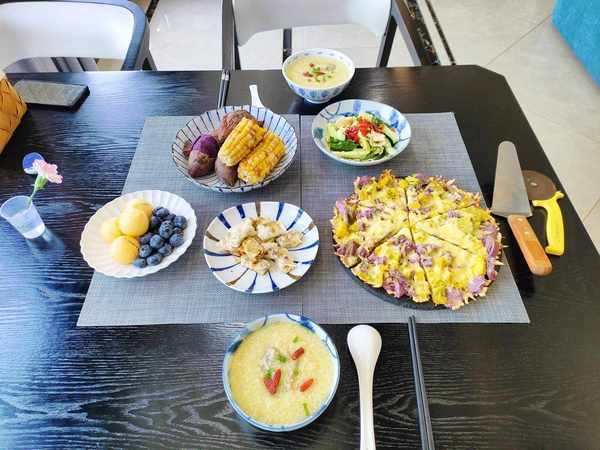 其實,雖然它們名字都叫粗糧,但是氣質真的很好吃,一點也不粗。這個紫薯軟糯細膩,這個彩色玉米也是又香又糯,兩個都帶著微微的甜,都很好吃。