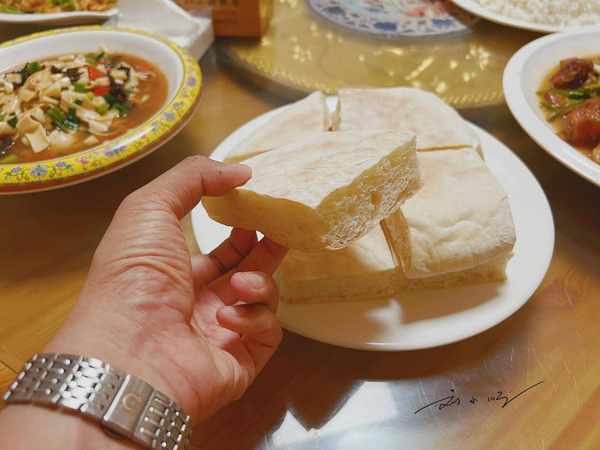 在“小虎土菜館”裡,我們果然吃到瞭很多具有當地特色美食,其中有一種美食則是讓我印象比較深刻的,那就是“劉圩大餅”。