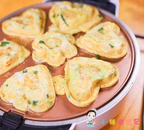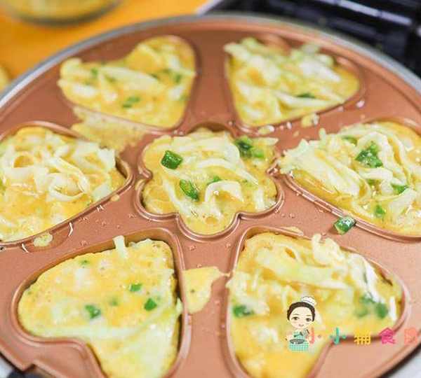 第5步、小白鍋噴油預熱,放入雞蛋液,沒有這個鍋也可以用平底鍋或者三明治機做。