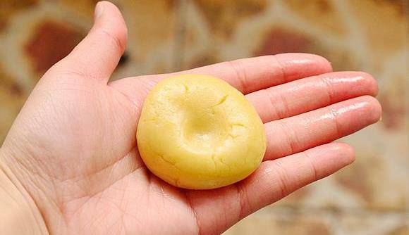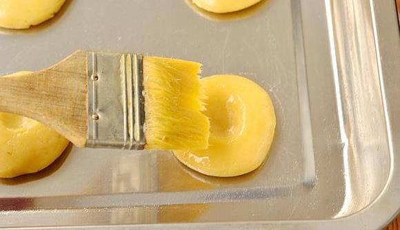 3:臭粉是使桃酥酥脆可口和炸開口的關鍵所在,如果沒有的話,就把面團壓的扁一些,再放入烤盤裡烘烤。
