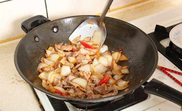 最後將肉片倒入,加入少許辣椒片,快炒均勻即可。
