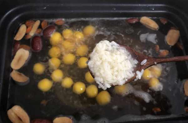 第五步:鍋中加入適量清水煮開,放入紅棗、枸杞、小圓子,煮至小圓子浮起來。