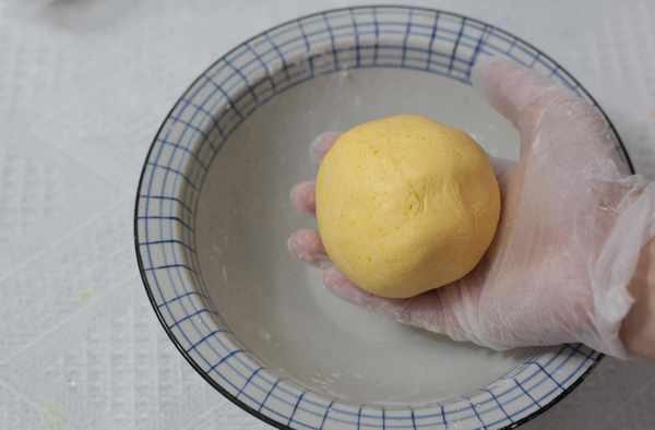 第三步:加入糯米粉,先攪拌成絮狀再用手揉成光滑面團。