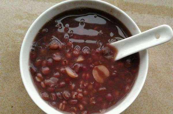 5、攪勻之後繼續用小火煮制,直到湯羹變得粘稠,糯米等食材都軟爛,紅豆剛煮開即可關火,然後開上鍋蓋,繼續燜煮十分鐘之後就可以盛出來開始享用瞭。
