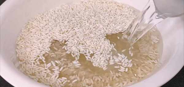 第一步:準備1碗糯米,倒進大碗中,加入清水洗幹凈,最好能洗兩遍,再重新倒入清水,浸泡上一個晚上,讓糯米輕輕一捏就碎,再清洗一次即可。