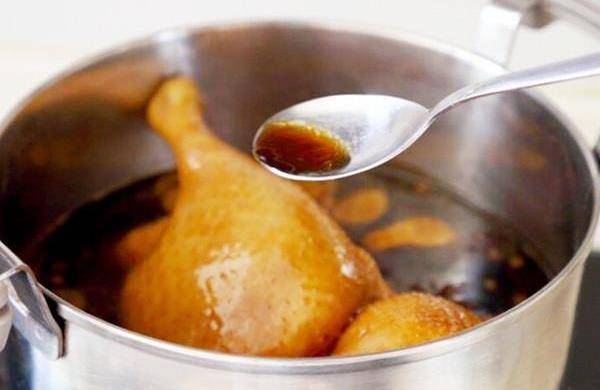 要是想要味道更鮮美可以選擇用剛才焯鴨子的水繼續制作,裡面的浮沫是要撇出去的,也可以從新起鍋,這就要看自己的選擇瞭,鍋中放入蔥段,薑片,桂皮,八角,花椒,冰糖,食鹽,生抽,醬油,用大火煮開後,把鴨子放進去,不斷的往鴨子上澆汁,不時地給鴨子翻個面,用中火熬制半個小時,就可以把鴨子撈出來瞭。