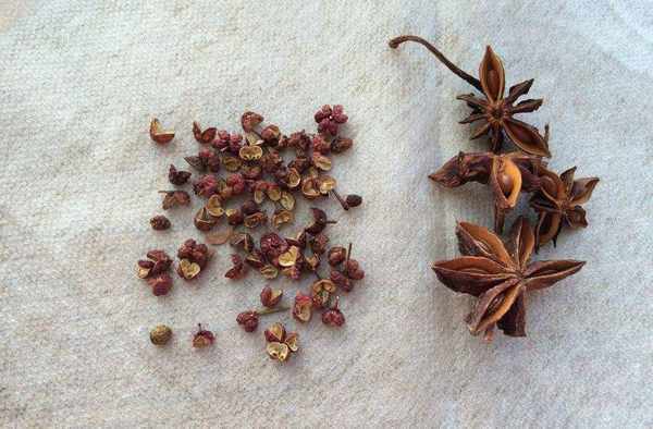 (7)將八角、桂皮、香葉、小茴香、甘草、花椒、草果、丁香、砂仁、草豆蔻等香料,裝入紗佈袋並紮緊袋口;