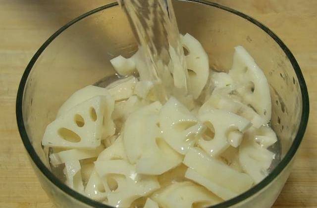 首先把蓮藕清洗幹凈,把蓮藕的皮去掉,再切成小塊(挑選蓮藕的時候盡量選擇那種兩頭封閉的,這樣的比較幹凈),放入容器中,再加入適量的清水,滴幾滴白醋,蓮藕在裡面泡著,這樣可以防止氧化蓮藕氧化發黑。
