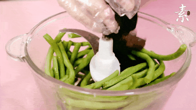 2.攪拌機放入豆角,紅蘿卜,木耳打成碎末。