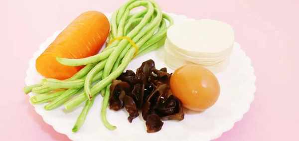 主料:豆角、木耳、紅蘿卜、雞蛋、餃子皮