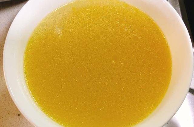 9、接下來就開始煮米飯瞭,把剛泡米飯的水倒出來,不過需要拿個碗,看看倒瞭多少水出來,然後在裝同樣多的雞湯進去燜飯,剛我倒瞭差不多大半碗的水出來,隻會加入同樣多的水進去煮米飯;