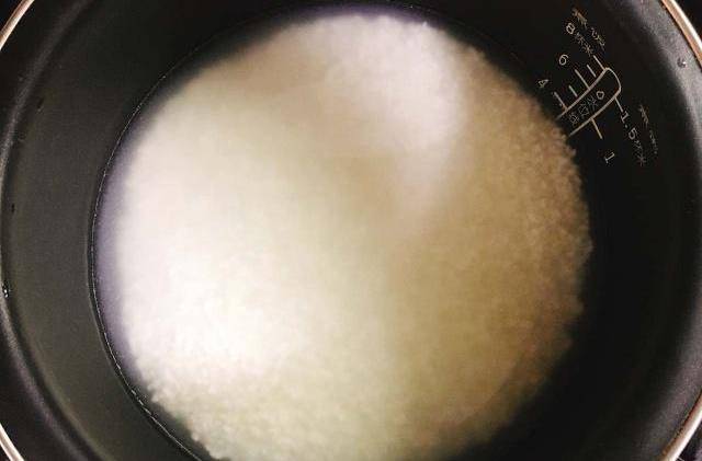 6、這個時候可以把大米淘洗幹凈,平時需要放多少水煮飯就放多少水進去浸泡大米;