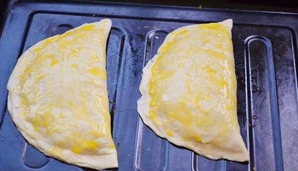 5、做完的兩個蘋果酥胚子依次放入烤盤上,並在表面塗抹一層薄薄的蛋液。