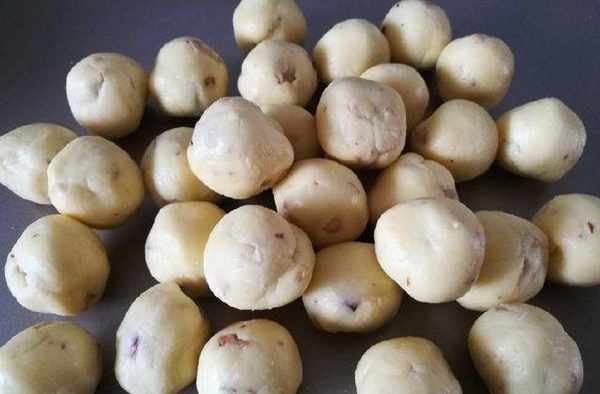 8、分成10克左右的一個小面團,用手心搓成圓球。