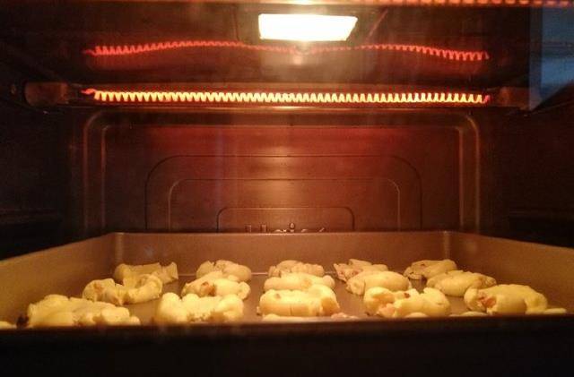 10、放入海爾嫩烤箱中下層,上管160度,下管150度烘烤16分鐘左右,普通烤箱請提前預熱170度,中層烘烤15分鐘左右,上色後即可出爐。