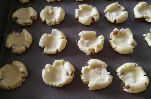 9、放入法焙客金盤,用大拇指輕輕按扁,邊緣會透出裂紋。