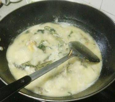 6,在鍋中加入適量的鹽和白胡椒粉調味,然後把它們攪拌均勻就可以出鍋瞭。